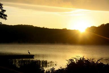 Keywords: lake sunrise water landscape summer peaceful dawn reflection scenic morning orange yellow rural outdoors natural scene sun nature ozarks missouri golden fresh