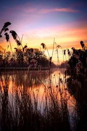 Keywords: lake sunset water river sky colorful peaceful romantic tranquil scenic reflection calm glassy reed view twilight dusk outdoor silhouette