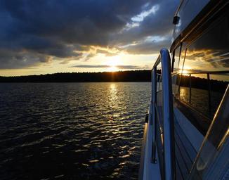 Keywords: lake sunset water ship dark clouds reeling