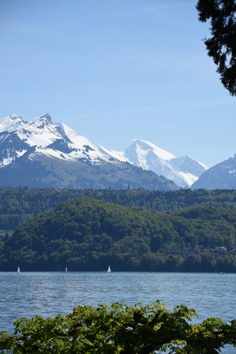 Keywords: lake thun alpine lake switzerland bernese oberland distant view nature