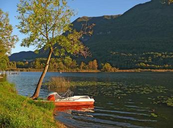 Keywords: lake tree nature landscape autumn water river landscape grass boot red