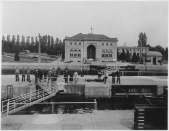 | Keywords: Lake Washington Ship Canal, U.S. Government Locks, Seattle, Washington. - NARA - 298862.tif Scope and content The US Army Corps of Engineers extensively photographed many of the Civil Works project and river and harbor improvement that they were involved with The Lake Washington Ship Canal and the Hiram Chittenden Locks were built to allow passage between fresh water Lake Union and salt water Puget Sound General notes 298862 Local identifier Department of Defense Department of the Army Office of the Chief of Engineers North Pacific Division Seattle District 09/18/1947 - 06/14/1979 NARA's Pacific Alaska Region Seattle NRIAS 6125 Sand Point Way NE Seattle WA 98115-7999 1937-09-27 Record group Record Group 77 Records of the Office of the Chief of Engineers 1789 - 1999 Record group ARC 406 Civil Works Project Photographs compiled ca 1900 - ca 1977 Series ARC 580875 File unit File unit ARC Variant control numbers NAIL Control Number NRIS-77-SEAPHOTOS-P2 yes Other versions <gallery> File Lake_Washington_Ship_Canal _U S _Government_Locks _Seattle _Washington _-_NARA_-_298862 tif tif File Lake_Washington_Ship_Canal _U S _Government_Locks _Seattle _Washington _-_NARA_-_298862 jpg jpg </gallery> NARA-cooperation PD-USGov NARA TIF images with categorized JPGs Washington state |