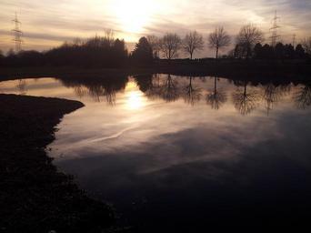 Keywords: lake water abendstimmung evening sun mirroring landscape pond golf course golf golf courses green sport