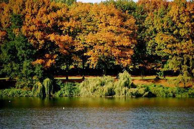 Keywords: lake water trees forest autumn forest colorful leaves color golden autumn fall foliage gelsenkirchen berger red yellow