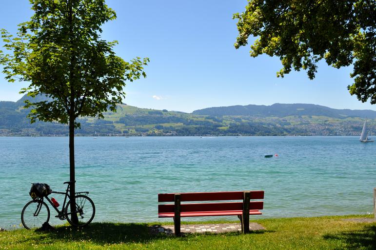 Keywords: lake zurich park bench water rest break landscape switzerland