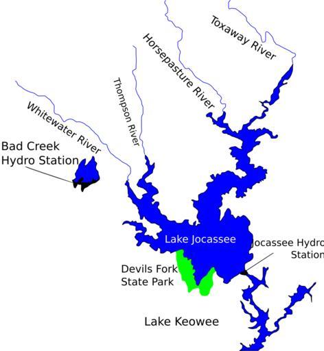 Keywords: LakeJocassee.svg My drawing of the bodies of water in and around Lake Jocassee Own 2007-10-29 Clemson3564 33 46 29 5 N 79 0 8 4 W Lake Jocassee