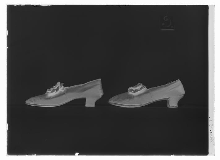 | Keywords: Lakejsko, pumps, gjord av mörkbrunt getskinn - Livrustkammaren - 26167-negative.tif Skon är skuren i ovanläder och bakstycke som förenas med dubbla sidsömmar Tåformen är bred och svagt rundad Klacken är klädd med skinn halvhög och något insvängd <br/><br/>Skon är fodrad med beigefärgat linne vävt i tuskaft Innersulan är gjord av beigefärgat getskinn <br/><br/>Mitt fram finns ett 47 mm långt sprund med på vardera sidan ett hål Ringningen är kantad med ett svart 10 mm brett bomullsband Skon är dekorerad mitt fram med en skinnrosett i tre lager bredd 95 mm höjd 55 mm sydd på en bottenplatta av linne Det nedersta lagret består av sju rundlar det mellersta av sex och det översta av två Rosetten pryds av ett sexkantigt spänne i rektangulär form i vitmetall bredd 35 mm höjd 22 mm <br/><br/>Yttersulan gjord av sämskat koläder På sulan i hålfoten står med blått skrivet 21 original caption early other date century 20 goatskin Färg mörkbrun d1 - dräkt - yttermaterial material getskinn - linen Färg beige d2 - dräkt - foder material linne - goatskin Färg beige d2 - dräkt - foder material getskinn - cotton Färg svart d4 - Dräkt - passpoaler band kantning uppslag material bomull size mm 255 size mm 73 sula size mm 40 klack size mm 33 klack g 143 LRK Skor ger mer - makt flärd magi 2007 place of origin original filename LN_B01963_004843 63673 inventory number LRK 27051 26167 CC0 Lakejsko pumps gjord av mörkbrunt getskinn - Livrustkammaren - 26167 tif |