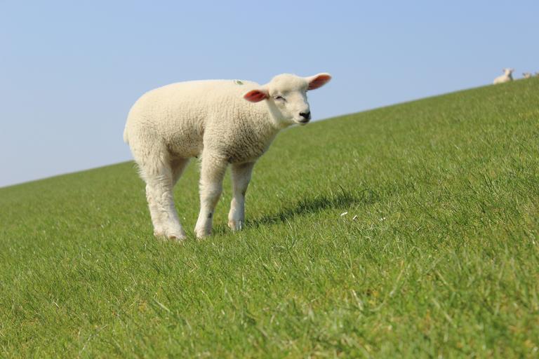 Keywords: lamb dike sheep nature schäfchen livestock animal friesland agriculture meadow