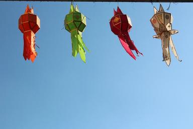 Keywords: lamps coloured blue sky