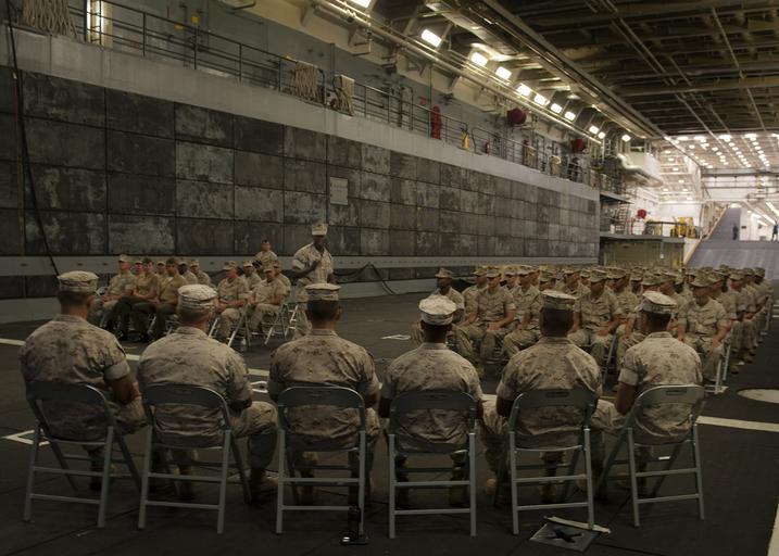 Keywords: Lance Corporals Leadership and Ethics Seminar 150501-N-CC789-164.jpg en SAN DIEGO May 1 2015 U S Marines Sgt Maj Brian Priester center 1st Tank Battalion of the Marine Corps Air Ground Combat Center Twentynine Palms delivers a message to newly graduates of the Lance Corporals Leadership and Ethics Seminar aboard amphibious transport dock ship USS Somerset LPD 25 Somerset served as the platform for a-week long seminar to ensure a better understanding of Marine Corps ethos leadership fundamentals and the total Marine amphibious concept The ninth San Antonio-class amphibious transport dock ship Somerset is named in honor of the crew and passengers of United Airlines Flight 93 which crashed near Shanksville Pa in Somerset County during the Sept 11 2001 terrorist attacks U S Navy photo by Mass Communication Specialist 1st Class Vladimir Ramos/Released 2015-05-01 Petty Officer 1st Class VLADIMIR RAMOS https //www dvidshub net/image/1913528 150501-N-CC789-164 2015-05-05 00 05 SAN DIEGO CA US PD-USGov-Military-Navy Marine Corps Air Ground Combat Center Twentynine Palms USS Somerset LPD-25 Images from DoD uploaded by Fæ