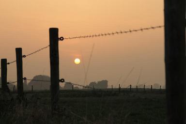 Keywords: land fence sunset barbed wire idyll landscape on the land