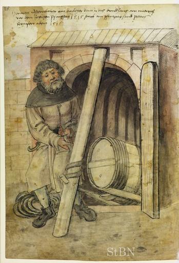 | Keywords: Landauer I 008 v.jpg Hermann Osterreicher Österreicher Einleger Transporteur von Fässern Näheres siehe http //www nuernberger-hausbuecher de/75-Amb-2-279-8-v/data Hausbuch der Landauerschen Zwölfbrüderstiftung Band 1 Nürnberg 1511-1706 Stadtbibliothek Nürnberg 279 2° via http //www nuernberger-hausbuecher de/ 1516 anonymous PD-old-100 Hausbuch der Landauerschen Zwölfbrüderstiftung Band 1 Barrels in art Basements Barrel skids in art | ||||