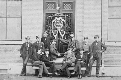 | Keywords: Landbouwhogeschool Wageningen, 1879, De eerste studenten bij het hoofdgebouw met vaandel.jpg nl De eerste studenten met vaandel bij het hoofdgebouw van de landbouw hogeschool Wageningen 1879 1879 19th century photograph found online at http //www wageningenur nl/nl/Over-Wageningen-UR/Historie-van-Wageningen-UR htm Historie van Wageningen UR author other versions PD-old-70-1923 Uploaded with UploadWizard Wageningen University Winand Carel Hugo Staring | ||||