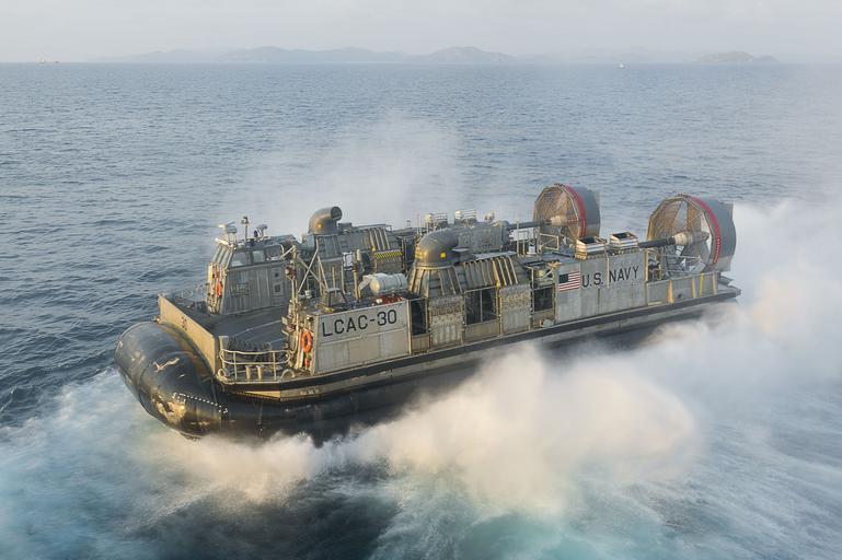 Keywords: Landing Craft Air Cushion 30 departs USS Bonhomme Richard (130219-N-LM312-007).jpg en Landing Craft Air Cushion LCAC 30 assigned to Naval Beach Unit 7 departs the well deck of the amphibious assault ship USS Bonhomme Richard LHD 6 in the Gulf of Thailand The Bonhomme Richard Amphibious Ready Group is deployed in the U S 7th Fleet area of responsibility and taking part in Cobra Gold a Thai-U S co-sponsored multinational joint exercise designed to advance regional security by exercising a robust multinational force from nations sharing common goals and security commitments in the Asia-Pacific region http //www navy mil/view_image asp id 144160 http //www navy mil/management/photodb/photos/130219-N-LM312-007 jpg image link 2013-02-19 U S Navy/Mass Communication Specialist 3rd Class Adam D Wainwright 130219-N-LM312-007 Navy http //www navy mil/management/photodb/photos/130219-N-LM312-007 jpg PD-USGov-Military-Navy LCAC-30 ship 1990 Images from US Navy location GULF OF THAILAND Naval Beach Unit 7 |