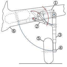 | Keywords: Landing gear schematic.svg Landing gear of an aircraft schematic view of the retracting mechanism Filled circles are fixed relative to the airframe Coloured arcs denote the locus of points Landing_gear_schematic JPG 2009-01-14 02 11 UTC derivative work Inductiveload <span class signature-talk >talk</span> Landing_gear_schematic JPG Dtom Undercarriage anim gif English - 1 Hydraulic Ram - 2 Hinge Mechanism - 3 Strut - 4 Wheel Boss - 5 Wheel - 6 Fuselage/Wing Vectorised to SVG Inductiveload Landing_gear_schematic JPG Aircraft part </nowiki> Uploaded with derivativeFX Schematic drawings of aircraft Language-neutral aviation diagrams Diagrams labelled with numbers only Retractable undercarriages SVG aviation |