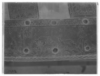 | Keywords: Ländpansar till hästrustning, har troligen tillhört Johan III, 1500-tal - Livrustkammaren - 10975-negative.tif LSH artwork sv Bestående av 45 plåtar i varierande storlek sammanfogade med nitar och på insidan kantband av sämskat läder Längs kanterna rader av nitar med kullriga mässingsskallar Formen välvd och formad efter hästens kropp med bredare bakparti Varje sida delas in i 14 rektagulära fält klädda med mörkrött siden Kanter och flätverk med på den blanka utsidan ett heltäckande etsat mönster iform av nertill jaktscener och på banden helfigurbilder på män i olika typer av rustning varav några med sköldar Mellan figurbilderna runda medaljonger med byster av män och kvinnor i antikiserande kläder Pansarets övre del består av ett separat långsmalt stycke med framtill dekor av tätt rankverk och baktill format till en liggande hundliknande drake med lång ringlande svans uppspärrat gap och uppåtpekande öron Kroppen täckt av etsade lövliknade fjäll djurets längd 720 mm Insidan brunsvart och ojämn med tyliga slagmärken Längs nedre kanterna 20 mm breda band av brungult sämskat läder original caption century 16 velvet Färg mörkt röd material sammet - brass - steel - leather Färg brungul material läder g 8600 size mm 890 650 340 LRK Johan III av Sverige Tre Konungar på Åbo slott 1993 Björneborg - Johans stad Satakunta Museum Björneborg/Pori 2008 Trofast - hov och tass i kunglig tjänst 2010-2011 Livrustkammaren Trogna vänner - Kungliga hästar och hundar 2011-2012 Museiverket/Finlands nationalmuseum place of origin original filename LN_E02917 59504 inventory number LRK 22862 10975 CC0 Ländpansar till hästrustning har troligen tillhört Johan III 1500-tal - Livrustkammaren - 10975 tif <gallery caption Different images of same object > File Ländpansar till hästrustning troligen tillhörigt Johan III 1500-tal - Livrustkammaren - 79460 tif File Ländpansar till hästrustning troligen tillhörigt Johan III 1500-tal - Livrustkammaren - 2415 tif File Ländpansar till hästrustning troligen tillhörigt Johan III 1500-tal - Livrustkammaren - 36659 tif File Ländpansar till hästrustning troligen tillhörigt Johan III 1500-tal - Livrustkammaren - 70895 tif </gallery> <gallery caption Related objects > File Manpansar möjligen tillhörigt Johan III 1500-talets mitt - Livrustkammaren - 19537 tif LRK 22860 File Manpansar möjligen tillhörigt Johan III 1500-talets mitt - Livrustkammaren - 36657 tif LRK 22860 File Manpansar möjligen tillhörigt Johan III 1500-talets mitt - Livrustkammaren - 62337 tif LRK 22860 File Bogpansar till hästrusning troligen tillhörigt Johan III 1500-tal - Livrustkammaren - 35526 tif LRK 22861 File Manpansar möjligen tillhörigt Johan III 1500-talets mitt - Livrustkammaren - 70899 tif LRK 22860 File Bogpansar till hästrusning troligen tillhörigt Johan III 1500-tal - Livrustkammaren - 44085 tif LRK 22861 File Bogpansar till hästrusning troligen tillhörigt Johan III 1500-tal - Livrustkammaren - 79454 tif LRK 22861 File Manpansar möjligen tillhörigt Johan III 1500-talets mitt - Livrustkammaren - 79458 tif LRK 22860 File Manpansar möjligen tillhörigt Johan III 1500-talets mitt - Livrustkammaren - 53776 tif LRK 22860 File Manpansar möjligen tillhörigt Johan III 1500-talets mitt - Livrustkammaren - 45215 tif LRK 22860 File Manpansar möjligen tillhörigt Johan III 1500-talets mitt - Livrustkammaren - 10973 tif LRK 22860 File Manpansar möjligen tillhörigt Johan III 1500-talets mitt - Livrustkammaren - 28096 tif LRK 22860 File Utställningsbild sadlar hästrustningar mm - Livrustkammaren - 77173 tif LRK 22861 File Manpansar möjligen tillhörigt Johan III 1500-talets mitt - Livrustkammaren - 2413 tif LRK 22860 File Manpansar möjligen tillhörigt Johan III 1500-talets mitt - Livrustkammaren - 35519 tif LRK 22860 </gallery> |