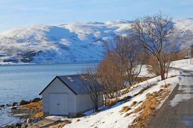 Keywords: landscape beautiful sky sea fjord snow mountain nordic house winter travel lauklines kystferie kvaloya kvaløysletta norway tromso scandinavia europe