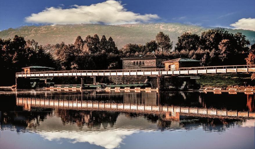 Keywords: landscape bridge weir river summer water architecture