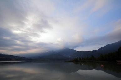 Keywords: landscape clouds dawn sky nature water reflection lake cloud mountains background blue horizon