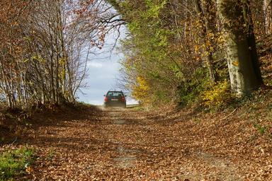 Keywords: landscape forest forest path vehicle autumn fall leaves