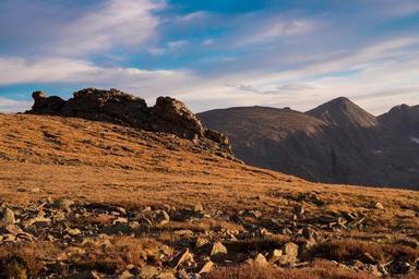 Keywords: landscape highlands alpine rocks stones meadow field grass altitude mountain view hill outdoor scenic environment peak range