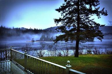 Keywords: landscape lake nature trees rain québec canada