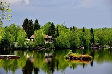 Keywords: landscape lake summer sky trees water based reflections green québec