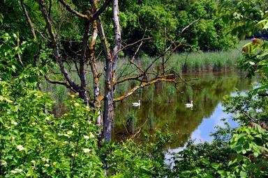 Keywords: landscape lake swan forest water reflection vegetation grass rural