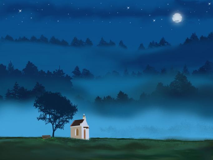 Keywords: landscape moon blue light night nature moonlight sky tree star