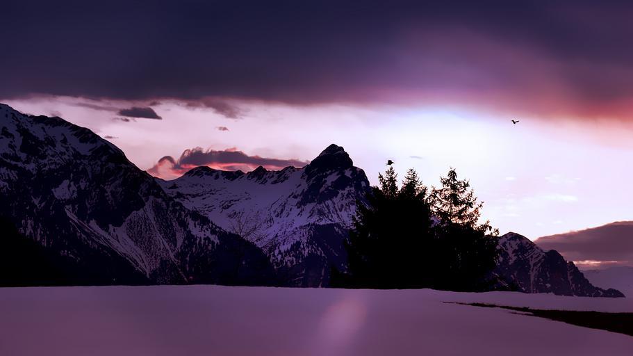 Keywords: landscape mountains mountain peaks mountain summit winter snow sunrise lighting outlook rest relaxation silent morgenstimmung