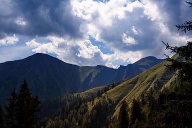 Keywords: landscape mountains nature panorama mountain landscape mountain peaks trees sky clouds weather mood summer light and shadow austria view outlook tyrol