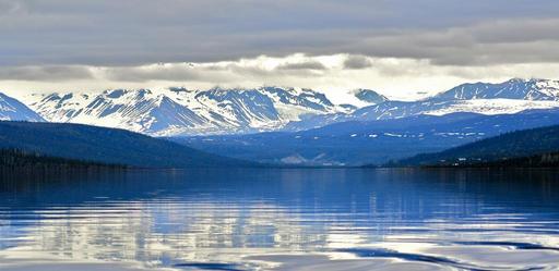Keywords: landscape mountains snow gulkana river alaska usa water panorama scenic reflection outdoors wilderness rugged nature sky clouds