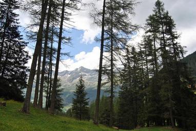 Keywords: landscape mountains trees spring alpe prato sky