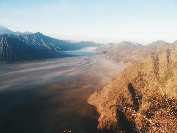 Keywords: landscape mountains valley fog view above clouds wide flowing nature outdoors hiking