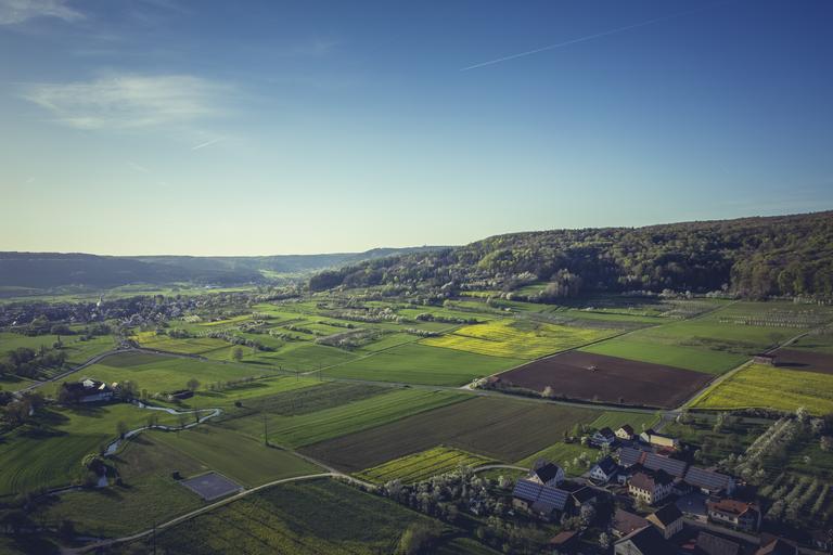 Keywords: landscape nature forest meadow pasture of course hill summer outlook bavaria swiss francs upper franconia w franconian switzerland walberla ehrenbürg sky distant hot air balloon