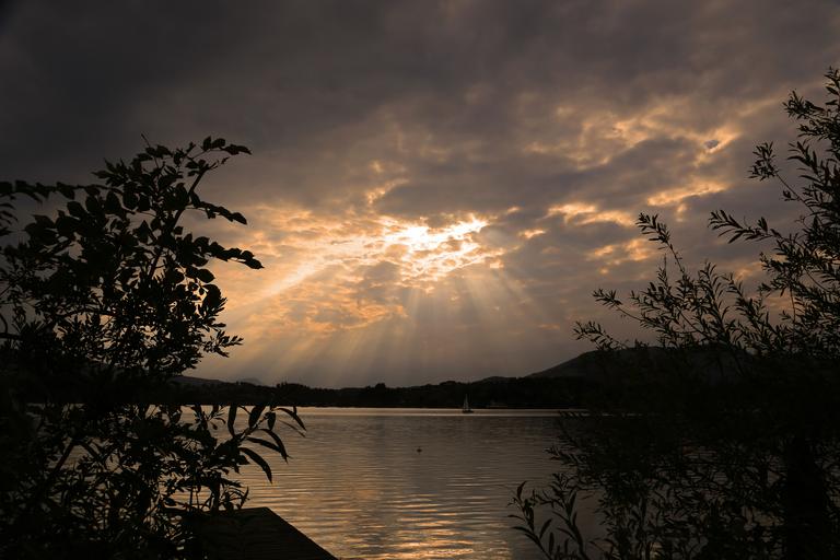 | Keywords: landscape nature lake sunset summer clouds natural sky water trees shrubs mirroring autumn natural water sparkle gewitterstimmung mood silhouette sunlight horizon abendstimmung back light romantic afterglow sunbeam dramatic sky mondsee dusk lighting atmospheric rays atmosphere drama cloud formation light weather mood weather |