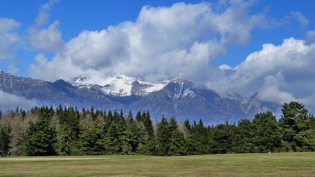 Keywords: landscape nature mountain spring trees forest sky clouds alps field