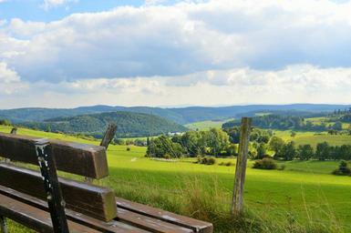 Keywords: landscape nature quiet view hiking sky green meadow rush bank wood mountains forest trees