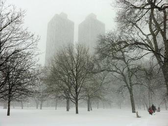 Keywords: chicago illinois city cities winter snow snowing ice trees skyline skyscrapers buildings urban park people nature outside