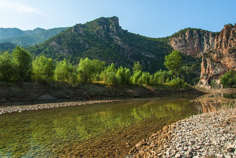 Keywords: landscape river nature water natural landscape trees mountains wood pine tree ecology blue sky