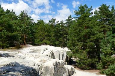 Keywords: landscape sand stone feuerland trees sky clouds blue romantic idyllic