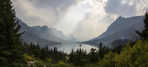 Keywords: landscape scenic outdoors lake mountains trees clouds reflection water wild goose island overlook glacier national park montana usa