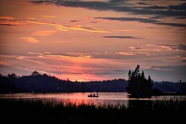 Keywords: landscape sunset twilight colors sky clouds nature fishermen evening summer lake trees québec canada