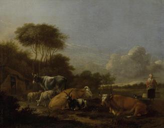 | Keywords: Landschap met vee Rijksmuseum SK-C-162.jpeg accession number SK-C-162 Albert Jansz Klomp credit line nl Landschap met vee Op de voorgrond liggen koeien een geit en enkele schapen Rechts een boerin met een juk met emmers op de schouders links een boerderij onder bomen Pendant van SK-C-161 drager Height cm 27 5 drager Width cm 35 exhibition history Institution Rijksmuseum Technique oil canvas object history Acquisition 1885-06-30 object type Potential derivatives exist check http //commons wikimedia org/w/index php search Rijksmuseum+SK-C-162 this search PD-US PD-old Data and photography rights All data and all images made available through the API are either in the public domain or are subject to a CC0 license https //www rijksmuseum nl/en/api/terms-and-conditions-of-use cc-zero place of creation http //www rijksmuseum nl/collectie/SK-C-162 Landschap met vee Q17342045 Uploaded with GWToolset Landschap met vee Rijksmuseum SK-C-162 http //www rijksmuseum nl/media/assets/SK-C-162 Images uploaded by Fæ Images from the Rijksmuseum Paintings by Albert Jansz Klomp in the Rijksmuseum Amsterdam Albert Jansz Klomp |