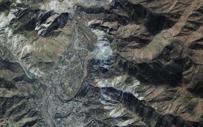 | Keywords: Landslide, Neelum River, Pakistan, Image of the Day DVIDS738421.jpg en The magnitude 7 6 earthquake that shattered Pakistan on October 8 2005 caused the most damage in the region surrounding the city of Muzaffarabad about 10 kilometers southwest of the earthquake's epicenter The quake flattened buildings and triggered landslides throughout Kashmir The Ikonos satellite captured an image of a landslide top in Makhri a village on the northern outskirts of Muzzaffarabad on October 9 2005 The western face of the mountain has collapsed sending a cascade of white-grey rock into the Neelum River The landslide is likely only one of many to occur along the river which is almost unrecognizable after the earthquake The blue waters seen on September 15 2002 have turned brown with the dirt of landslides upstream The landslide shown here blocked the river's normal course forcing the Neelum to abandon the u-shaped bend seen in the center of the lower image for a more direct course over its former brown and white banks to its northern reaches The damage to the city is not visible even in this detailed image but the media report that the city has nearly been destroyed More than 51 300 people have died and at least 3 million are homeless making aid organizations call the disaster worse than the 2004 Indian Ocean tsunami The earthquake occurred along the western end of the Himalaya Mountains where tectonic motion is pushing India under Tibet The motion of the continent builds pressure over time which is relieved in massive earthquakes Scientists have been predicting a major earthquake in the region The last catastrophic earthquake to rattle the region occurred in 1555 though quakes similar to the October 2005 quake have occurred as recently at 1974 With a death toll over 50 000 the October 2005 earthquake is the most deadly earthquake to occur on the Indian subcontinent geologist Roger Bilham of the Cooperative Institute for Research in Environmental Sciences reported in his cires colorado edu/~bilham/Kashmir 202005 htm analysis of the quake NASA Identifier neelum_iko_2002258_xlrg 2011-07-05 Glenn Research Center https //www dvidshub net/image/738421 738421 2012-10-17 23 59 WASHINGTON DC US PD-USGov Images from DoD uploaded by Fæ Neelum River landslide Earthquake-triggered landslides in Pakistan |