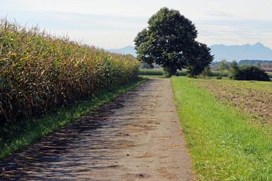 Keywords: lane cornfield away tree individually dirt track field meadow agriculture