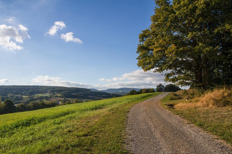 Keywords: lane landscape nature away tree clouds outlook autumn vision gravel road meadow
