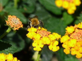 Keywords: lantana hummel pollination insect lantana camara ornamental plant yellow flower blossom bloom verbena greenhouse verbenaceae plant garden