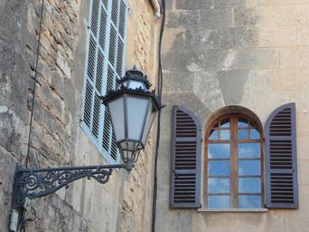 Keywords: lantern lighting street lamp lamp window building city village light home facade masonry alley mallorca