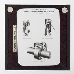 | Keywords: Lantern Slide - Tangyes Ltd, Screw-Shaft Bolt Forcer, circa 1910.jpg Three views of a Tangye hydraulic screw-shaft bolt forcer Size mm 83 83 3 exhibition history Text printed in black ink on white adhesive paper label over black mask TANGYES BIRMINGHAM Institution Museum Victoria Lantern Slide Black White object history One of 239 glass lantern slides depicting products manufactured by Tangyes Limited engineers of Birmingham England The images include various products such as engines centrifugal pumps hydraulic pumps gas producers materials testing machines presses machine tools hydraulic jacks etc Tangyes was a company which operated from 1857 to 1957 They produced a wide variety of engineering products exported worldwide including Australia and other British colonies It is thought that this collection of magic lantern slides was used by a local agent for sales purposes These images were originally used to illustrate Tangyes Ltd product catalogues from the period 1910 - circa 1920s PD-Australia author http //collections museumvictoria com au/items/803608 Info http //collections museumvictoria com au/content/media/16/433916-original jpg Image Uploaded with GWToolset Lantern Slide - Tangyes Ltd Screw-Shaft Bolt Forcer circa 1910 http //collections museumvictoria com au/content/media/16/433916-original jpg Tangyes Lantern Slide Collection |